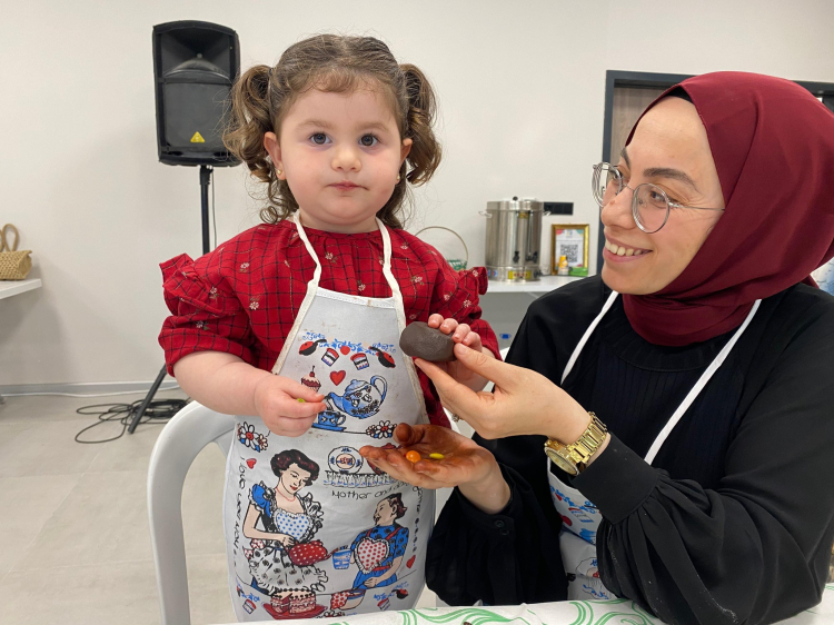 Etkinliğe katılan anneler ve çocukları, kurabiye yaparak birlikte zaman geçirmenin tadını çıkardı. Renkli önlükleriyle çocuklar, anneleriyle birlikte kurabiye hamurlarını yoğurdu, şekillendirdi ve pişirdikleri kurabiyeleri süsleyerek ortaya birbirinden lezzetli ve eğlenceli tarifler çıkardı.