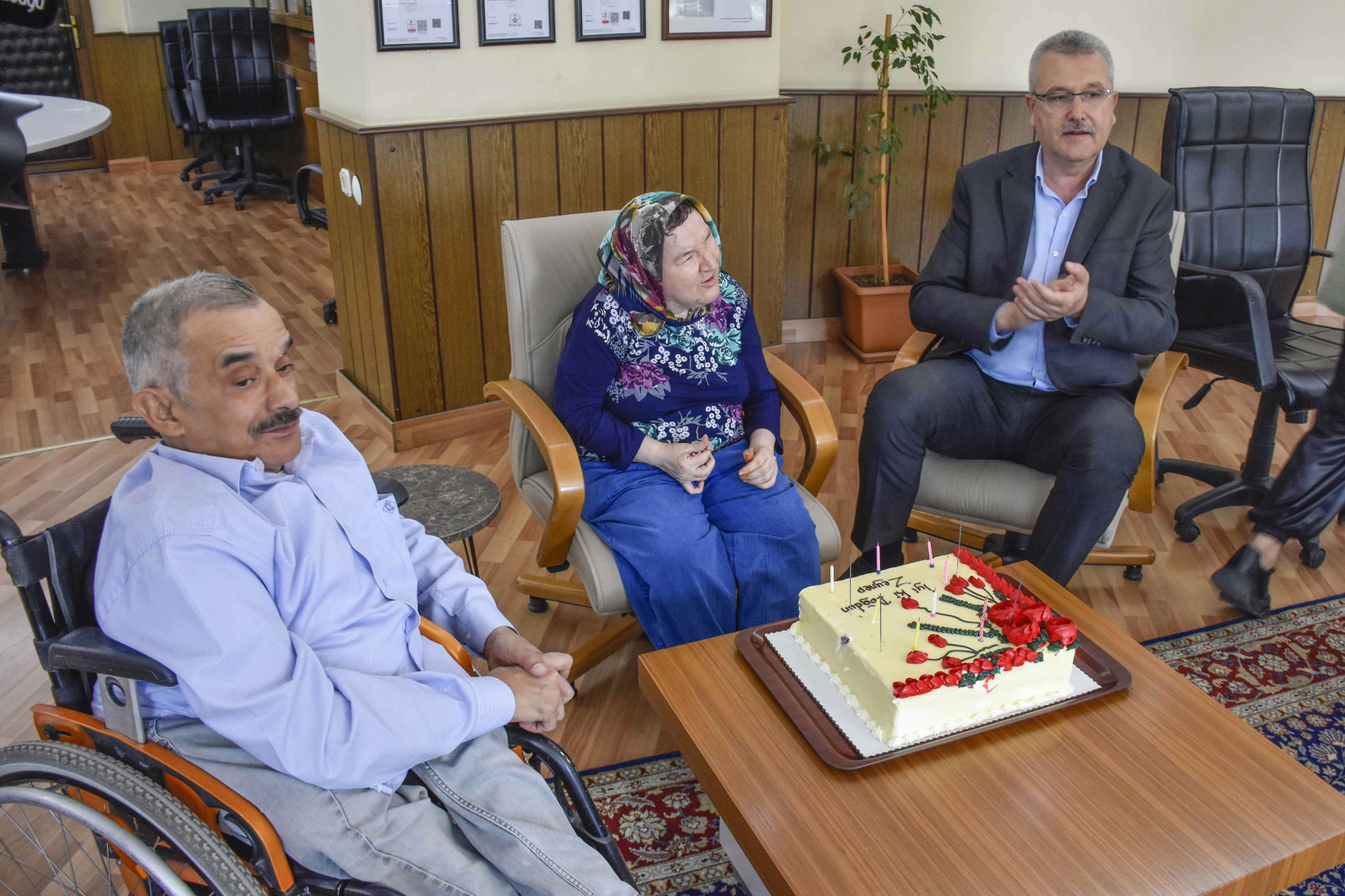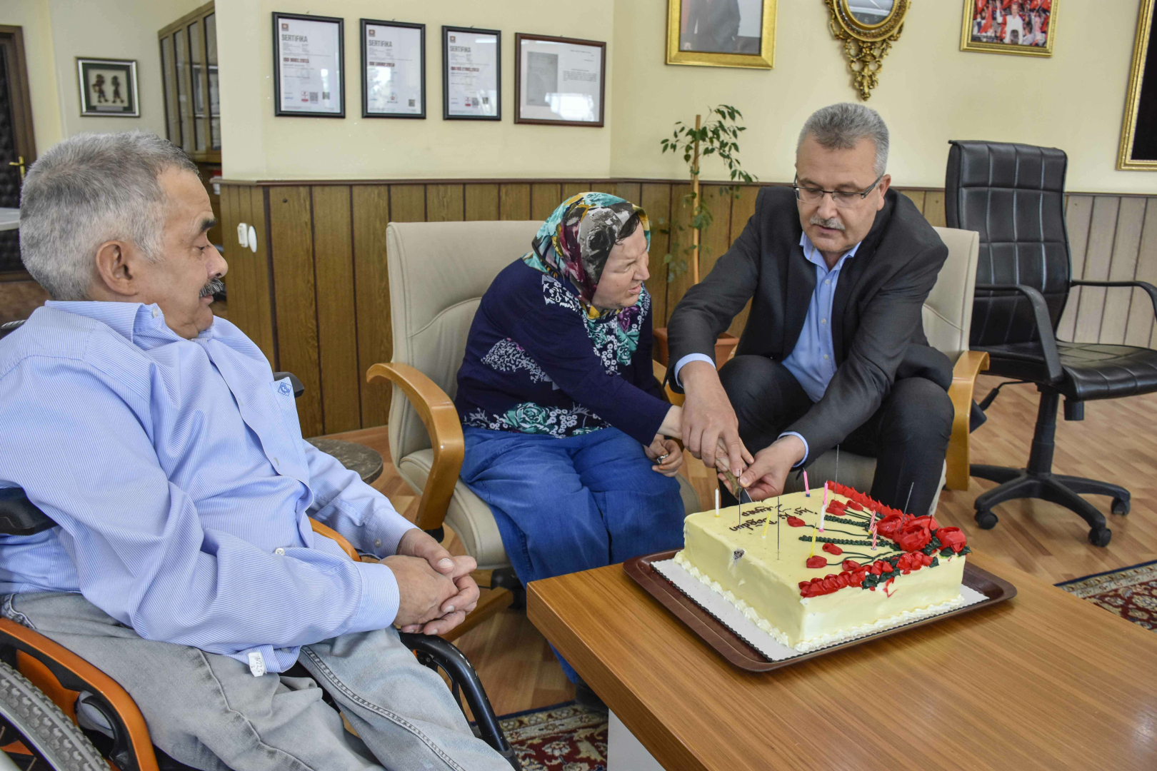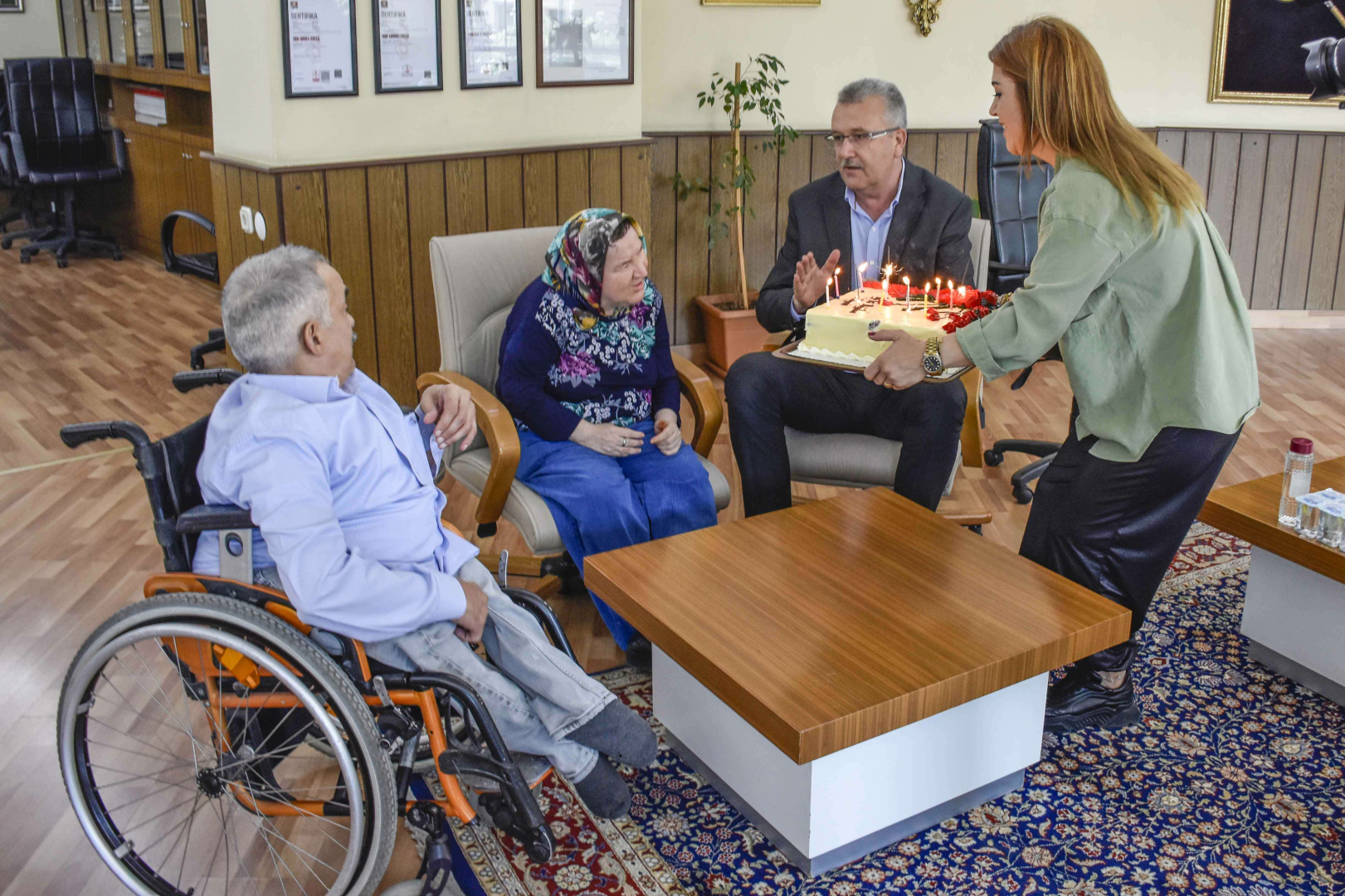 Bursa’nın Karacabey ilçesinde yaşayan 59 yaşındaki görme engelli Zeynep Karakuş, yaklaşan doğum gününü Belediye Başkanı Ali Özkan ile kutlamak istediğini belirtmişti. Başkan Özkan, önceki gün doğum gününü kutlayan Karakuş’u evinden makam aracıyla aldırıp belediyeye getirdi. Makam odasında yapılan kutlamaya, Bedensel Engelliler Dernek Başkanı Kemal Demirel de katıldı.