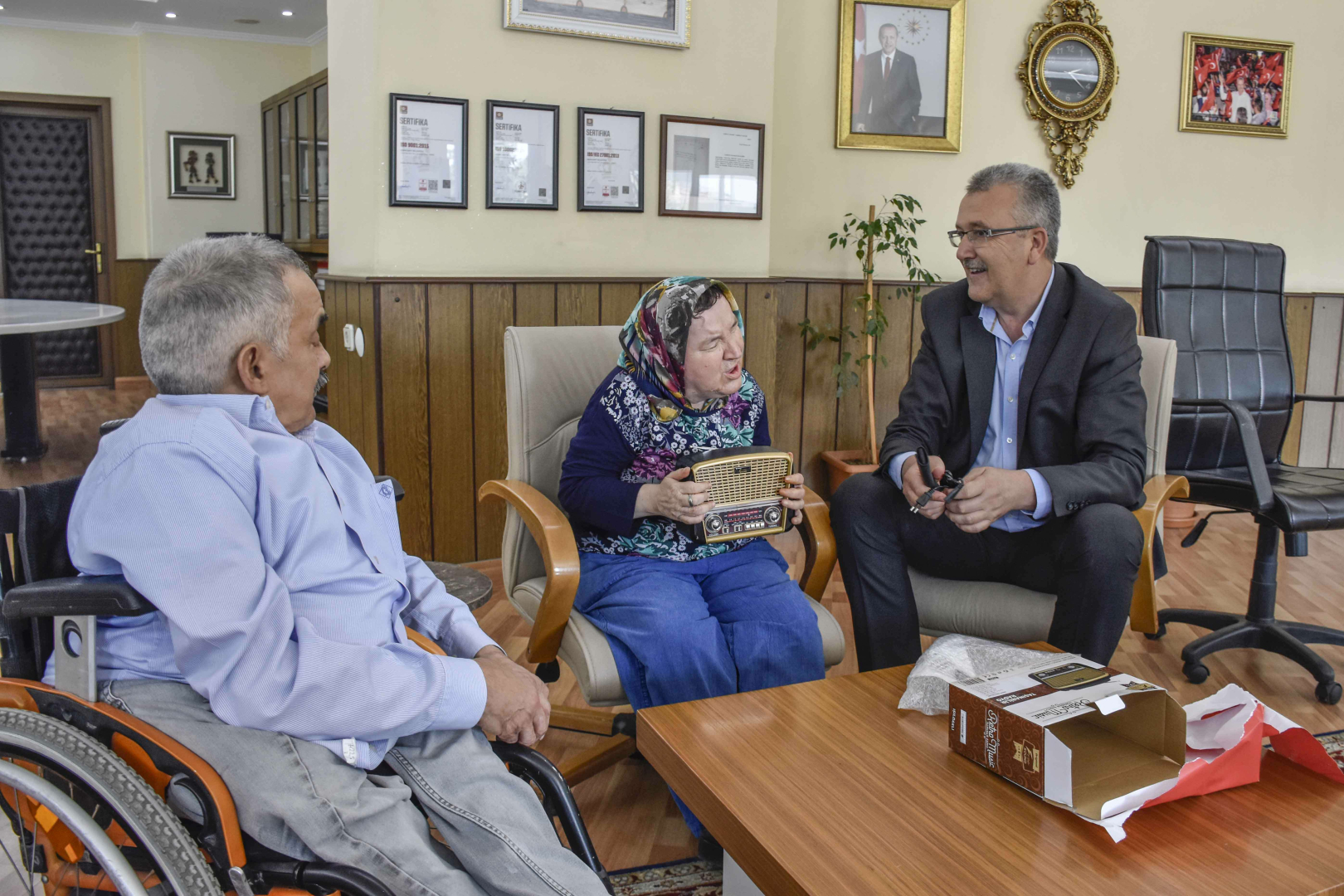 Başkan Ali Özkan ile belediyede kutlayan ve çok mutlu olan görme engelli Zeynep Karakuş’un en büyük hayali ise hayranı olduğu Cumhurbaşkanı Erdoğan ile tanışmak…