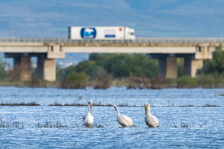Bölgedeki kuş türleri arasında ak pelikan da yer alıyor.
