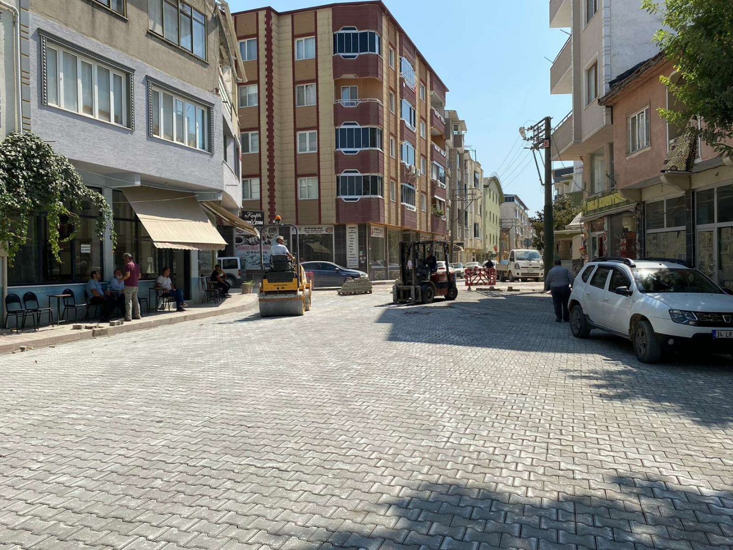 Bursa Büyükşehir Belediyesi tarafından Karacabey ilçesinde sürdürülen içme suyu, kanalizasyon ve yağmur suyu hattı imalatı çalışmaları hızla sürerken, alt yapının tamamlandığı bölümler, parke taş uygulamalarıyla daha konforlu hale getiriliyor.
