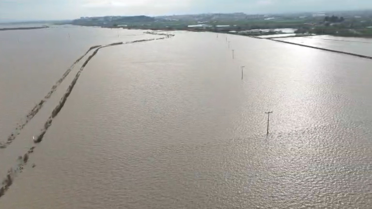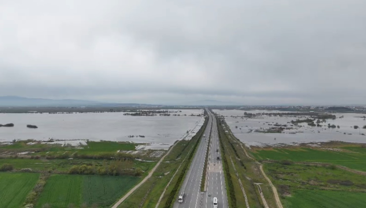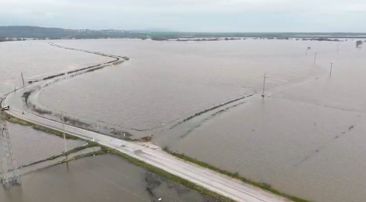 Bursa istikametinden Bandırma istikametine devam eden otoyol, suyla kaplanan ovayı tam ortadan ikiye böldü. Su altında kalan tarım arazilerinin dronla çekilen görüntüleri, taşkının etkilerini gözler önüne serdi.