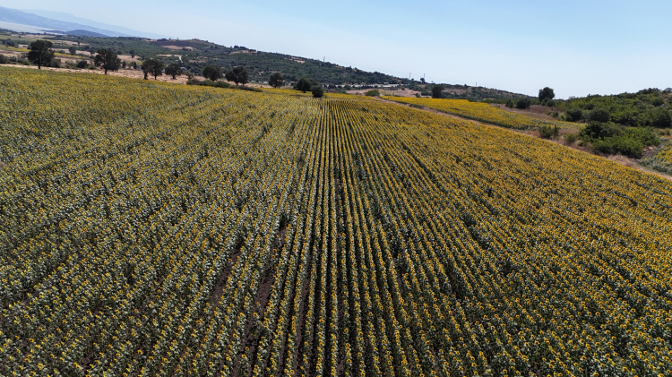 Büyüleyici manzara drone ile havadan görüntülendi. Karacabey Ovası'nda açan ayçiçekleri, hem bölge halkının hem de doğa fotoğrafçılarının ilgisini çekiyor.