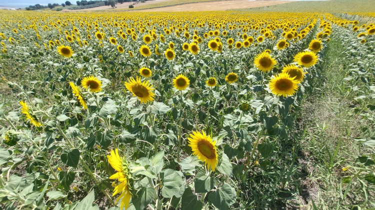Karacabey Ovası ayçiçeklerinin açmasıyla adeta tabloya döndü.