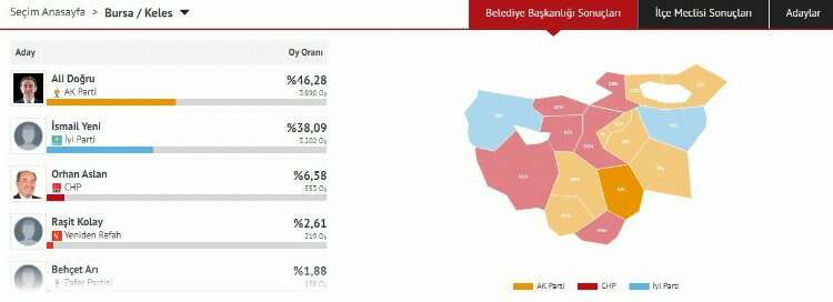 Kesin olmayan sonuçlara göre AK Parti'nin adayı Ali Doğru, Bursa Keles Belediye Başkanı oldu.