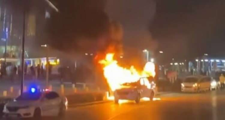 Kısa sürede alev topuna dönen araç meydanda büyük paniğe sebep oldu.