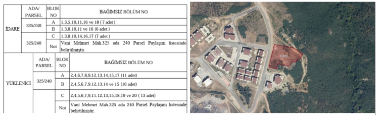 Yapılacal inşaattan; 20 taşınmaz bölüm belediyeye, 34 adet taşınmaz bölüm ise yüklenici firmaya verilecek.