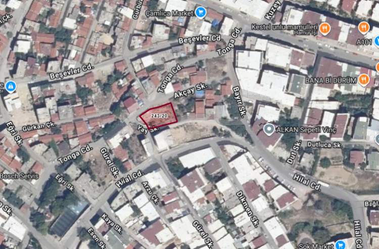243 ada 20 parsel ile 316 ada 64 parsel arasında trafo ve park alanı