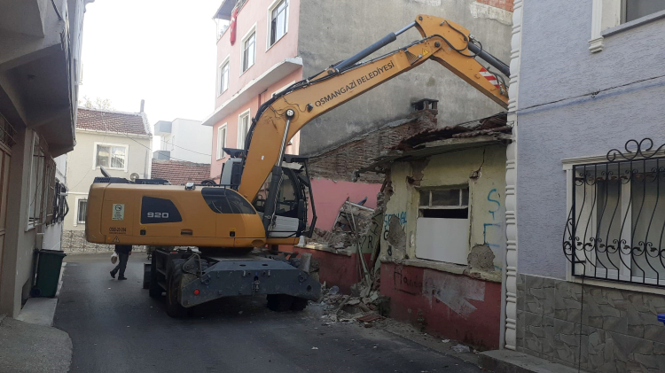 Osmangazi Belediyesi, ilçe sınırları içerisinde bulunan, emniyet ve sağlık açısından risk oluşturan metruk binaların yıkımını sürdürüyor.