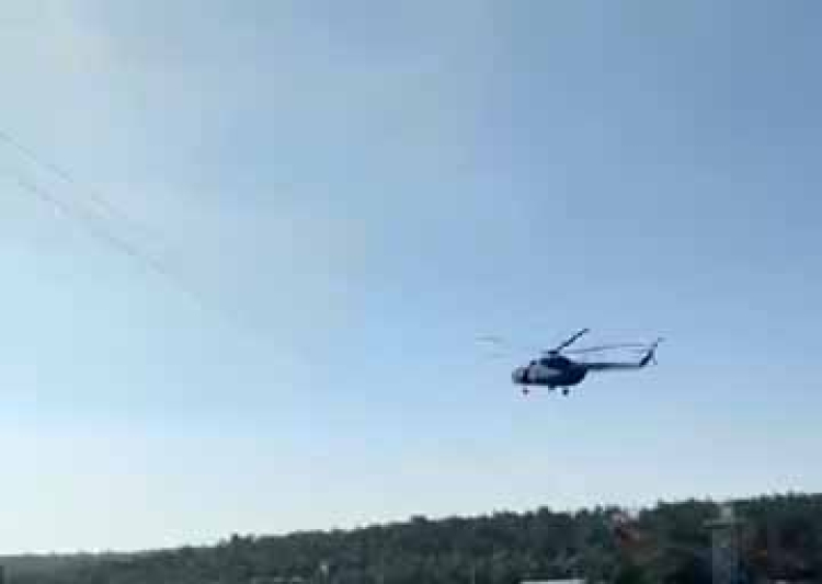 Göletten su aldıktan sonra yeniden havalanan helikopterin önüne elektrik telleri çıktı.