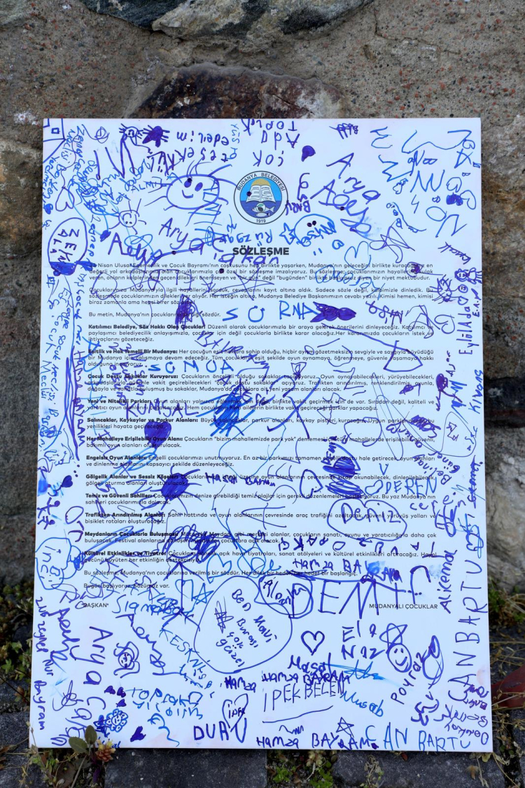 “Katılımcı Belediye”, “Söz Hakkı Olan Çocuklar”, “Eşitlik ve Hak Temelli Bir Mudanya”, “Çocuk Dostu Sokaklar”, “Her Mahalleye Erişilebilir Oyun Alanları”, “Engelsiz Oyun Alanları”, “Trafikten Arındırılmış Alanlar”, “Temiz ve Güvenli Sahiller”, “Sessiz Köşeler”, “Kültürel Etkinlikler ve Tiyatro” gibi başlıklar altında toplanan sözleşme, önemli taahhütler içeriyor.