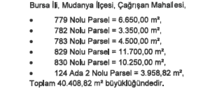Mudanya Belediye Başkanlığı Plan ve Proje Müdürlüğü tarafından yayımlanan açıklama raporunda, 6 parselin 4'ünün tarım arazisi nitelikli olduğu görüldü.