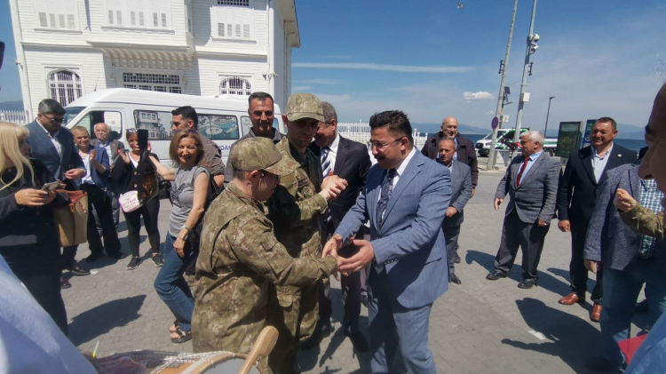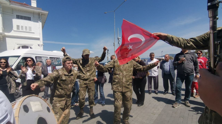 Yeniden Mudanya'ya dönen temsili askerler, Mütareke Meydanı'nda davul zurnayla karşılandı.