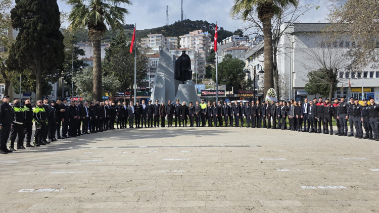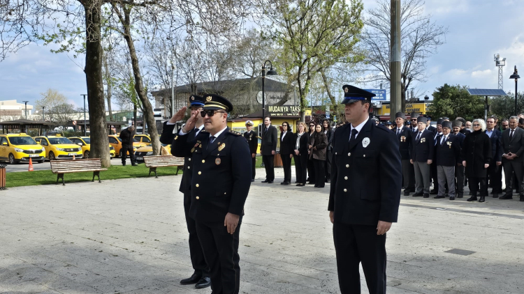 Mudanya’da Türk Polis Teşkilatı'nın 181'inci kuruluş yıl dönümü ve Polis Haftası nedeniyle Atatürk Anıtı önünde tören düzenlendi. İlçe Emniyet Müdürü Serdar Makineci’nin Atatürk büstüne çelenk sunmasının ardından saygı duruşunda bulunuldu, İstiklal Marşı okundu. Törende günün anlam ve önemine ilişkin konuşmalar yapıldı. Programa gaziler, belediye meclis üyeleri, siyasi parti ilçe başkanları ve yöneticileri, sivil toplum kuruluşu temsilcileri, muhtarlar ile vatandaşlar katıldı.