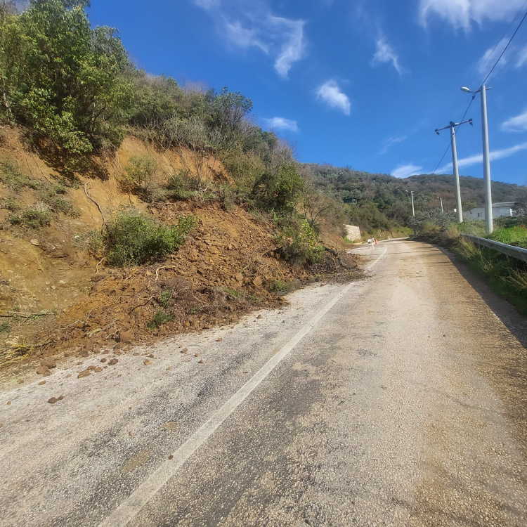Yaşanan kayma sonucunda kaya parçaları ve devrilen ağaçlar ulaşıma kapanan yol, belediye ekiplerinin temizlik çalışmasının ardından yeniden açıldı.