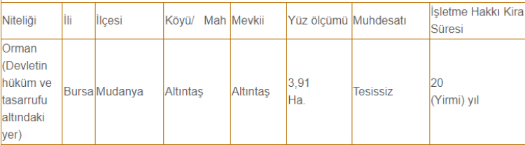 Bursa Orman İşletme Müdürlüğü'nün yayımladığı ihale duyurusunda şu ifadeler yer aldı: