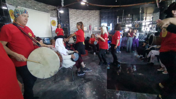 Darbuka, cajon, bendir, bongo, asma davul ve zilli tef gibi enstrümanlarla gösteri sunulan ziyarette huzurevi sakinleri, grubun sergilediği performans eşliğinde dans edip doyasıya eğlendi. Eğlenceli geçen etkinliğe huzurevi personeli de katılarak ortamı daha da renklendirdi.