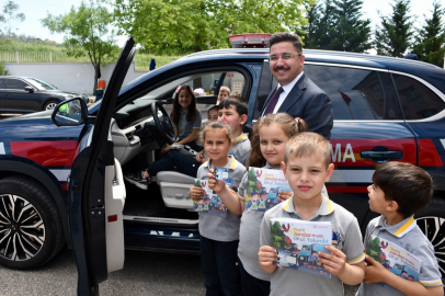 Etkinlik kapsamında öğrencilere çeşitli bilgilendirici materyaller dağıtılırken, İlçe Jandarma Komutanlığı'nın envanterindeki yerli ve milli otomobil Togg da öğrencilerin ilgisini çekti. Minikler, Togg ile hatıra fotoğrafları çektirerek keyifli anlar yaşadı.