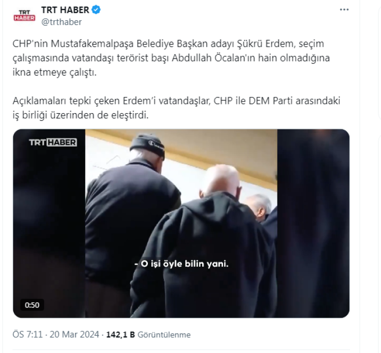 TRT'nin Şükrü Erdem hakkındaki iddiaları gerçekmiş gibi sunduğu sosyal medya paylaşımı ise hala duruyor.