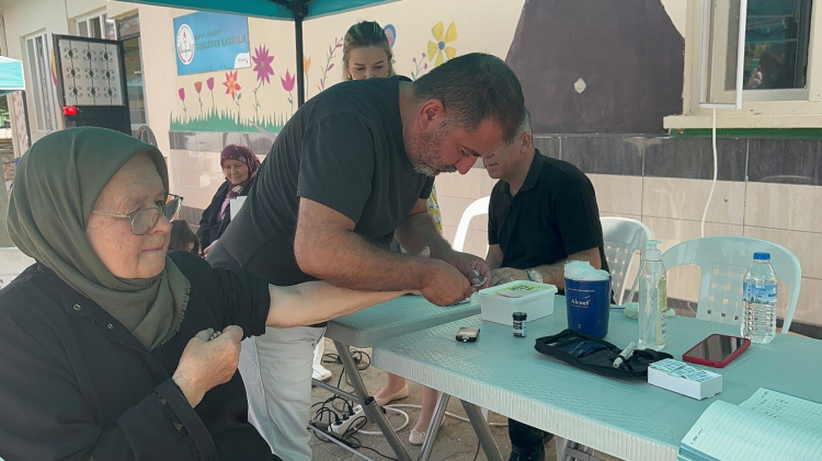 ‘Sağlıklı Yaşlanıyoruz’ projesi kapsamında sağlık çalışanları, vatandaşların kan şekeri ile tansiyon ölçümünü yaptı. Yoğun ilgi gösterilen programda diyetisyenler de vücut kitle indeksi ölçümü gerçekleştirip, sağlıklı beslenme tavsiyeleri verdi. Nilüfer Belediyesi'nin sağlık uzmanları ilaç kullanımı ve hasta nakil hizmeti ile ilgili bilgilendirmede bulundu.