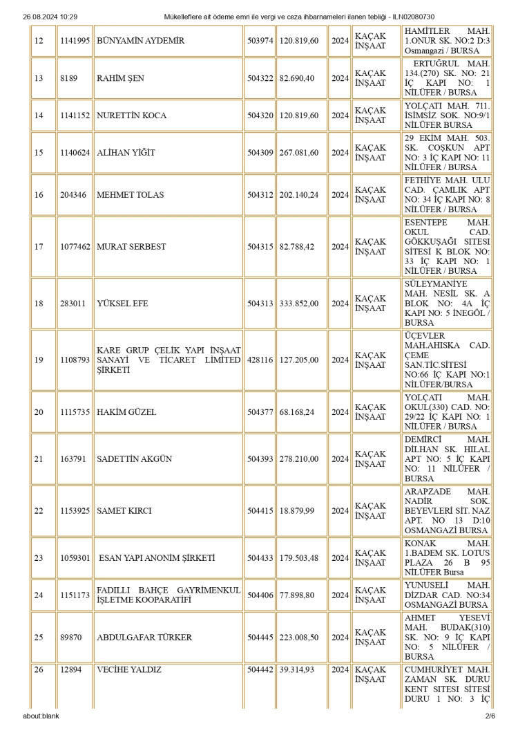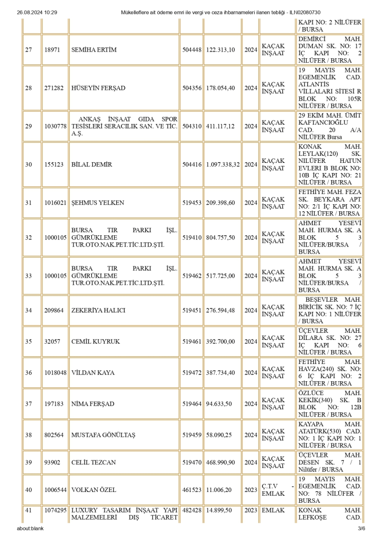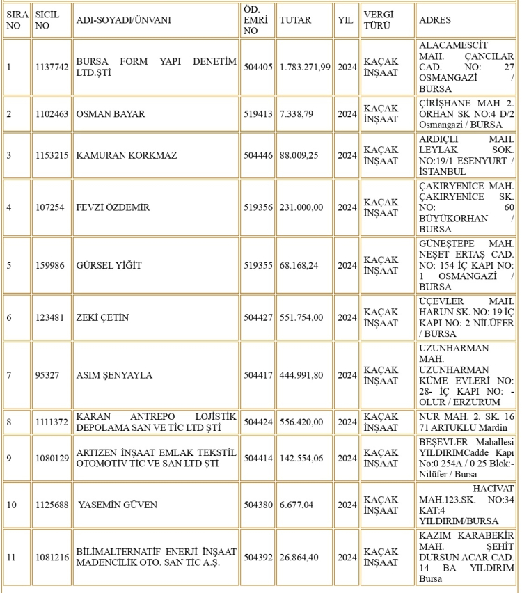 Bursa Nilüfer Belediyesi'nden kaçak inşaat duyurusu! İsimleri tek tek açıklandı