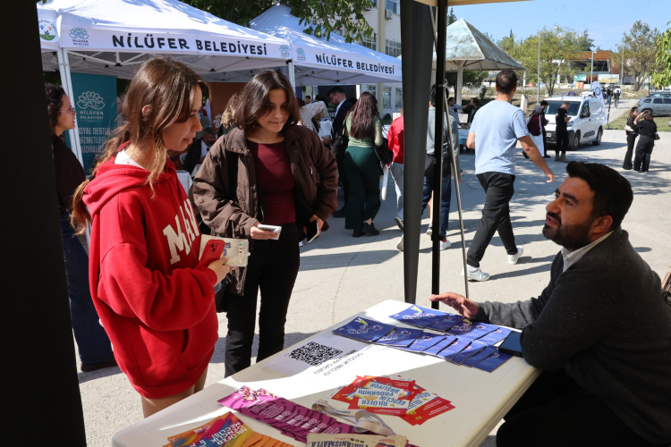 Nilüfer Belediyesi çalışanları, Bursa Uludağ Üniversitesi’nin 14-16 Ekim 2025 tarihleri arasında gerçekleştirdiği Oryantasyon Günleri’nde, üniversite öğrencilerine yönelik çalışmalarını ve sunduğu fırsatları anlatıyor.