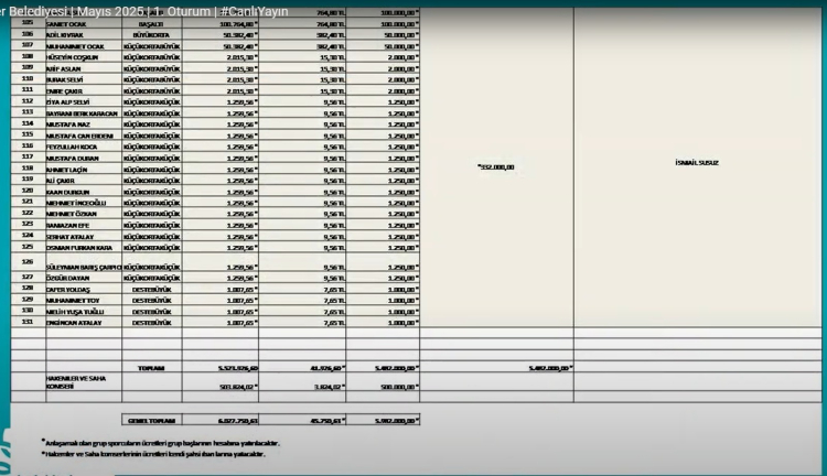 Önergenin görüşüldüğü belediye meclisi toplantısında, verilmesi planlanan ödüllerim listesi de paylaşıldı.