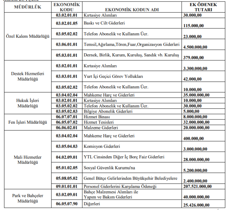 Plan Program ve Bütçe Komisyonu'nun hazırladığı raporun okunarak müzakere edilmesi sonunda; Belediyenin 2024 Ağustos ayı itibari ile yapılan ödenek kontrolünde; Müdürlüklerin ödeneklerinin, Mal, Hizmet alımları ile yapılmakta olan yatırımlar için hazırlanan istihkakların, yıl sonuna kadar yapılacak ödemelerine yeterli olmayacağından, toplam 2 milyar TL ek ödenek ödenek yapılmasına ihtiyaç duyulduğu ifade edildi.
