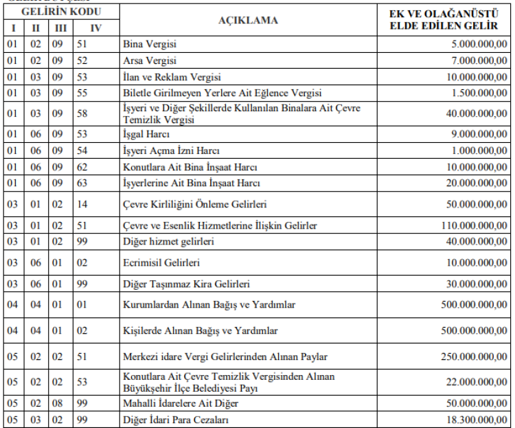 Belediyenenin ek bütçesinin 500 milyon TL'sinin kurumlardan, 500 milyon TL'sinin de kişilerden alınan yardım ve yağışlardan oluşacağı görüldü.