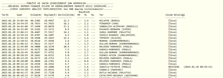 Kandilli saat 15.05'te meydana gelen 2.4 büyüklüğündeki depremin derinliğini 12.3 kilometre olarak açıkladı.