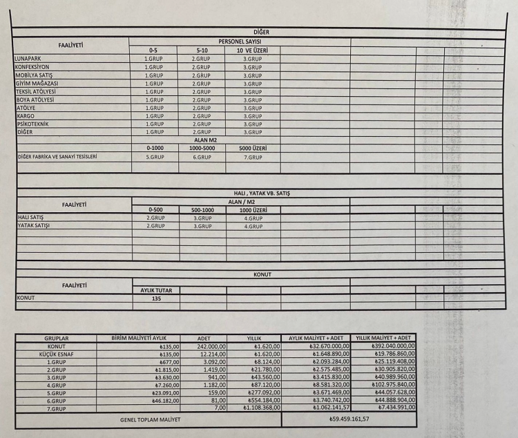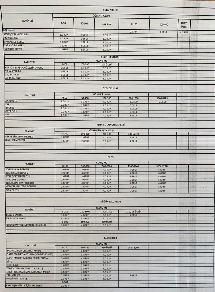 İşte işletmeler için yapılan gruplandırmalar...