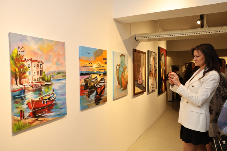 Bursa Nilüfer Sanat Atölyeleri’nde eğitimlerini tamamlayan Resim Atölyeleri Yetişkin Grubu’nun eserleri sanatseverlerden tam not aldı.