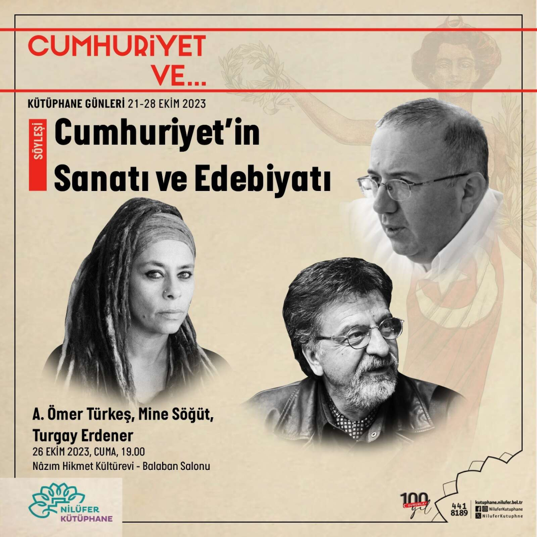 Nilüfer Belediyesi’nin 21-28 Ekim tarihleri arasında düzenleyeceği “Nilüfer Kütüphane Günleri”nde, 100. yılında Cumhuriyet, geçmişi, bugünü ve geleceğiyle tartışılacak. Değerli isimlerin konuk olacağı etkinliklerde Cumhuriyet, sanattan edebiyata, medyadan siyasal yaşama kadar çok yönlü olarak ele alınacak.