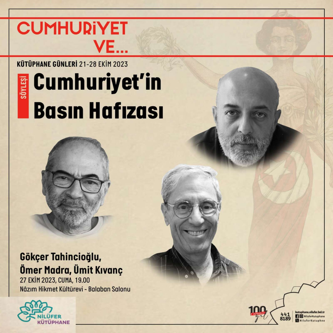 Nilüfer Kütüphane Günleri, 27 Ekim Cuma Günü de Gökçer Tahincioğlu, Ömer Marda ve Ümit Kıvanç’ı ağırlayacak. Söyleşide, “Cumhuriyet’in Basın Hafızası” konuşulacak.