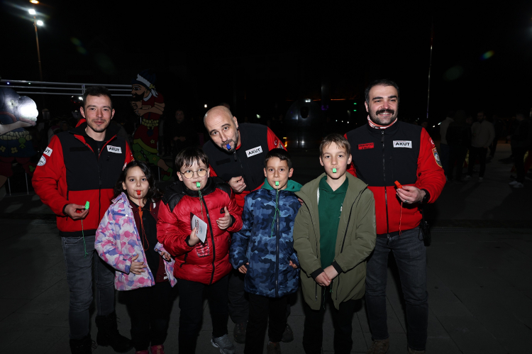 Program öncesinde ise AKUT Arama Kurtarma Derneği, deprem farkındalığını artırmak amacıyla katılımcılara renkli düdükler dağıttı.