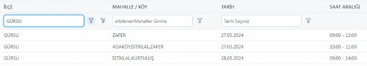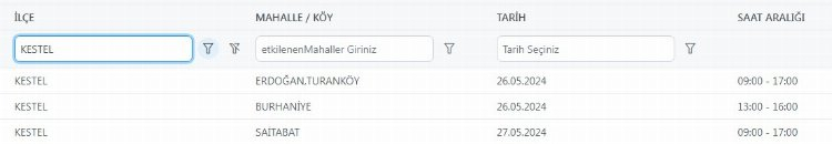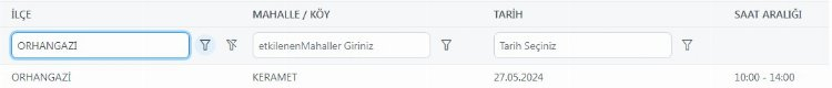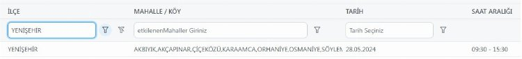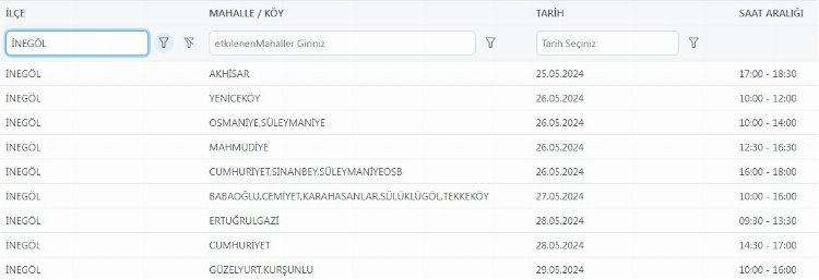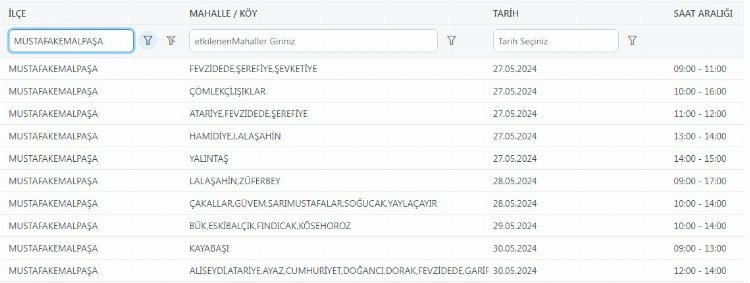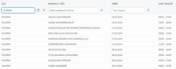 Bugünden başlayarak 1 Haziran Cumartesi tarihine kadar Bursa'nın Gemlik, Gürsu, Harmancık, İnegöl, Karacabey, Keles, Kestel, Mustafakemalpaşa, Nilüfer, Orhaneli, Orhangazi, Osmangazi, Yenişehir ve Yıldırım ilçelerindeki bazı noktalarda farklı sürelerde elektrik kesintileri yaşanacak.