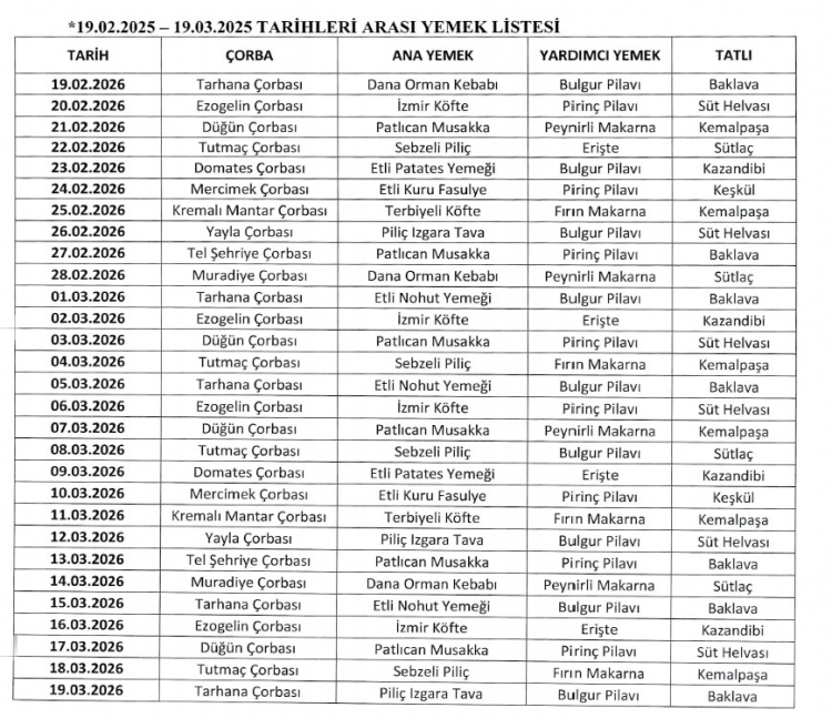 Öte yandan verilecek iftar yemeklerinde her gün bir et yemeği ile tatlının bulunacağı da öğrenildi.
