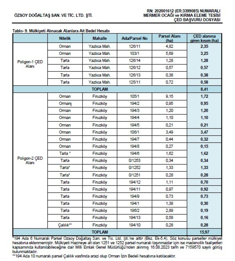 Öte yandan faaliyet gösterilecek alanlarının tamamının orman ve tarım arazilerinden oluştuğu öğrenildi.