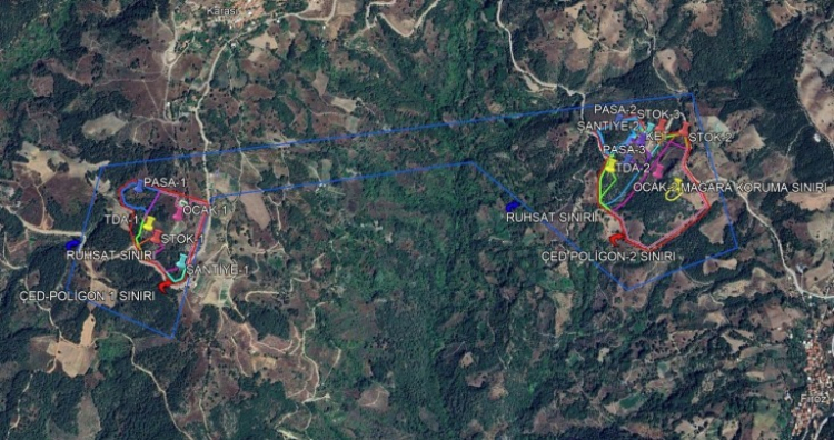 97,87 hektarlık ruhsat alanında 8,41 hektarlık ve 15,97 hektarlık 2 poligonda toplam 24,38 hektar için ÇED izni talep edildi.