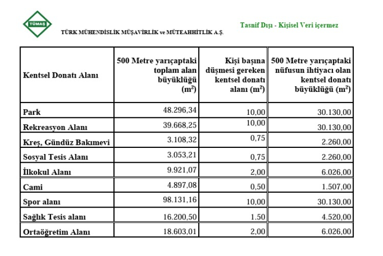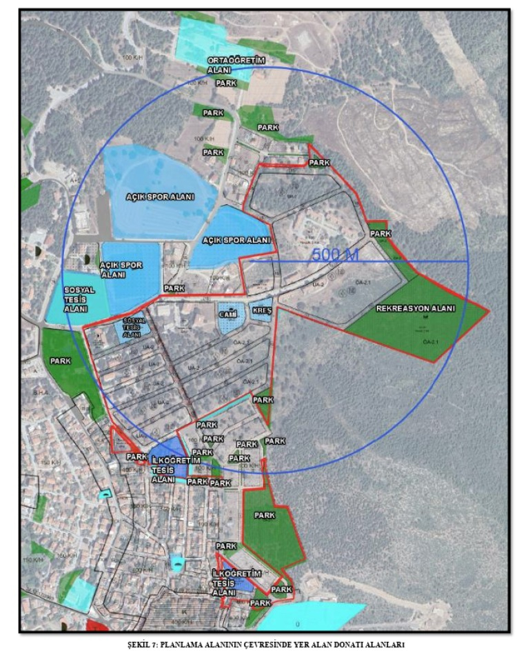 Şimşek, planlamada ayrılan konut alanında yaşayacak nüfusun ihtiyacı olan sosyal donatı alanlarının planlama alanında ayrılması gerekirken, planın kuzeybatı sınırından alınan bir noktadan 500 metre çap çizilerek bölgede mevcut olan donatılardan sağlandığı tespit ettiklerini ifade etmişti.