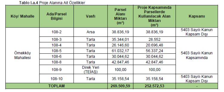 Öte yandan 108 ada 2 nolu parselin “Sanayi Alanı”, 108 ada 3 no’u parsel, 108 ada 4 nolu parsel, 108 ada 5 nolu parsel, 108 ada 6 no’u parsel, 108 ada 8 nolu parsel, 108 ada 9 nolu parsel ve 108 ada 10 no’lu parselin ise tarım alanı niteliğinde olduğu ifade edildi.