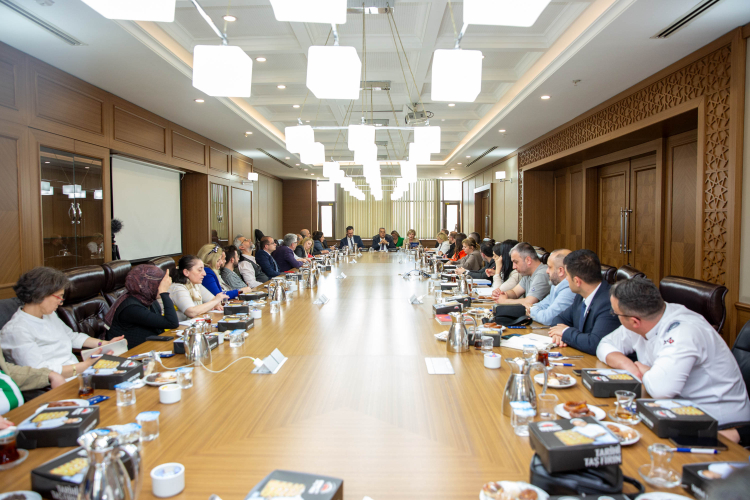 Toplantıda konuşan Genel Sekreter Yardımcısı Mehmet Yıldız, Büyükşehir Belediye Başkanı Mustafa Bozbey’in Bursa’nın gastronomi turizminde hak ettiği yere gelmesini önemsediğini belirtti. Kentin gastronomisini güncellemeyi ve daha etkin bir şekilde hayata geçirmeyi amaçladıklarını ifade eden Mehmet Yıldız, geçen sene düzenlenen Gastronomi Festivali’ni 500-600 bine yakın kişinin ziyaret ettiğini hatırlattı. Bu potansiyeli turizme entegre etmeyi ve konaklama gün sayısını artırmayı hedeflediklerini anlatan Yıldız, “Bursa’nın unutulmaya yüz tutmuş lezzetlerini ve coğrafi işaretli ürünlerini daha görünür platformda sergilemek istiyoruz. İnsanlar Bursa’ya geldiğinde burada köklü bir yemek kültürünün olduğunu biliyor. İşletmelerin özgün tarifleri öne çıkartmasını, yerel ekipmanlar kullanmasını ve mutfağı turistik nitelikte bir vitrine taşımasını arzuluyoruz. Her ürünün bir hikâyesi olmalıdır. Tüm bunları el ele vererek ortak bir akılla gerçekleştirebiliriz. Bursa Gastronomi Haritası’nı oluşturarak işaretli ya da belgeli işletmelerin diğer işletmelere örnek olacağına inanıyoruz. Bu çalışmalarla Bursa’nın lezzetlerini, bereketli topraklarından çıkan ürünlerini, Türkiye’ye ve dünyaya tanıtmak istiyoruz” dedi.
