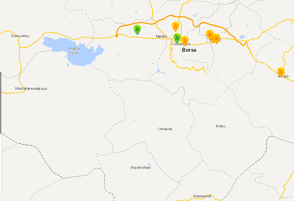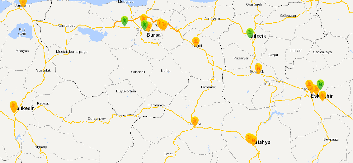 Bakanlığın verilerine göre Bursa genel olarak sarı ve yeşil kategori de yer alırken Eskişehir, Balıkesir ve Kütahya gibi çevre illerde sarı ve yeşil kategoride yer almakta.