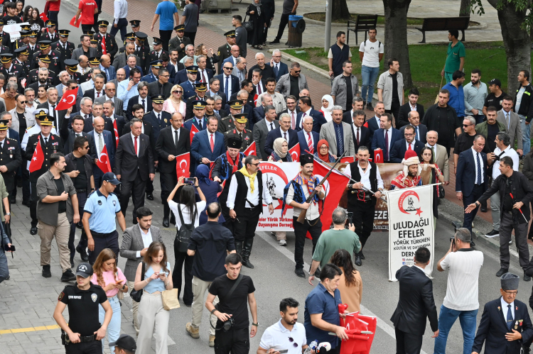 Bursa’nın düşman işgalinden kurtuluşunun 102. yıl dönümü, kentte büyük bir coşkuyla kutlandı. Kurtuluşun 102. yıldönümü kapsamında Bursa Valisi Erol Ayyıldız, Büyükşehir Belediye Başkanı Mustafa Bozbey ve protokolün katılımıyla Tophane’den Atatürk Anıtı’na dek uzanan bir kortej yürüyüşü gerçekleştirildi. Başkan Bozbey, “11 Eylül ruhu, sadece geçmişin bir zaferi değil, geleceğin de ışığıdır. Daha güçlü, daima hür ve bağımsız Bursa için Kuva-yi Milliye ruhuyla birlik ve beraberlik içinde çalışacağız” dedi.