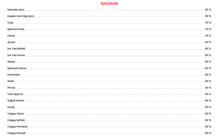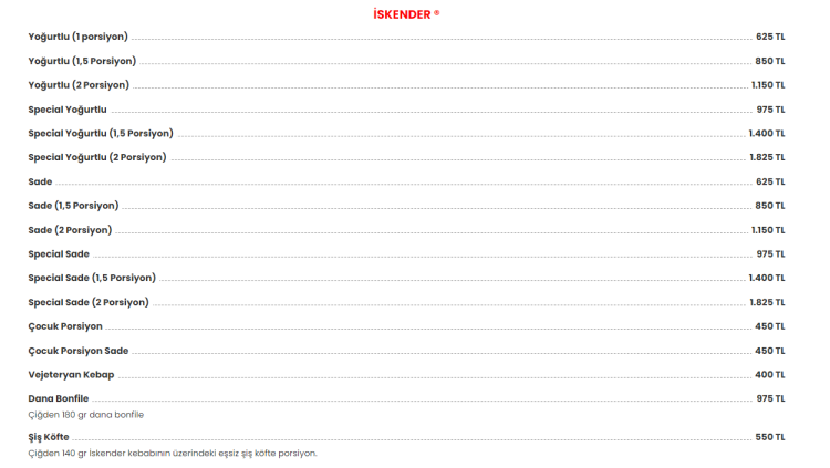 Yapılan 50 TL'lik zam sonrası 575 TL'den satılan İskender kebanın fiyatı 625 TL oldu.