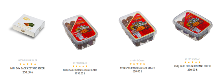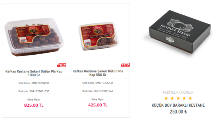 125 gramlık hediyelik kestane şekeri ise Kafkas'ta 250 TL'den satılıyor.