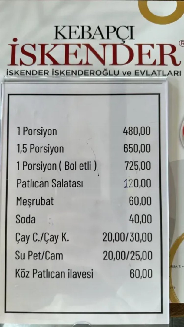 Sosyal medya son günlerde Bursa’daki bir restoranın iskender fiyatlarıyla çalkalanıyor. Zamların her geçen gün arttığı bugünlerde her alanda çok yüksek fiyatlara neredeyse alışır hale gelmişken iskender fiyatları bir kez daha gerçeği insanların yüzüne çarptı. Sosyal medyadan paylaşılan menüde bir porsiyon iskender in fiyatı 480 TL olarak karşımıza çıkarken bul etli bir porsiyon iskenderun fiyatı ise 725 lira olarak gözlemlendi.