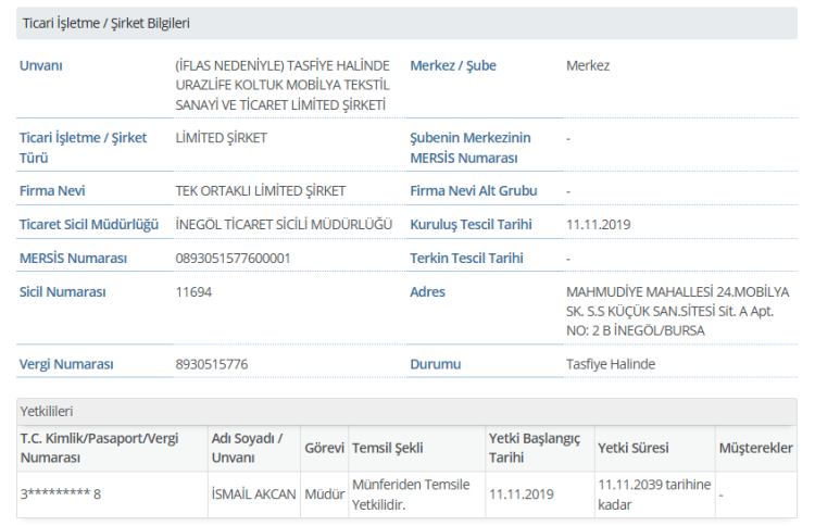 Türkiye'nin mobilya üssü Bursa İnegöl'de 2019 yılından bu yana faaliyet gösteren Urazlife Koltuk Mobilya Tekstil Sanayi ve Ticaret Limited Şirketi resmen battı.