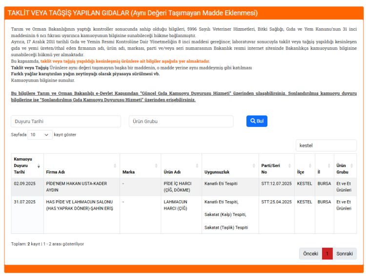 Tarım ve Orman Bakanlığı, gıda güvenliği kapsamında yaptığı rutin denetimlerin ardından, taklit ve tağşiş yapıldığı belirlenen ürünleri ve işletmeleri kamuoyuyla paylaştı.