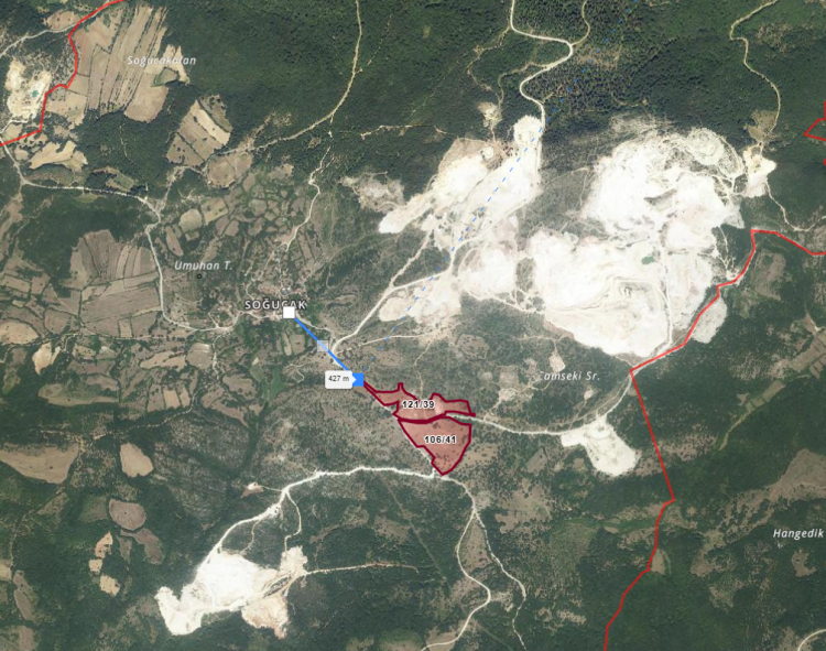 Öte yandan açılması planlanan ocağın, Soğucak mahallesine 427 metre mesafede olduğu öğrenildi.